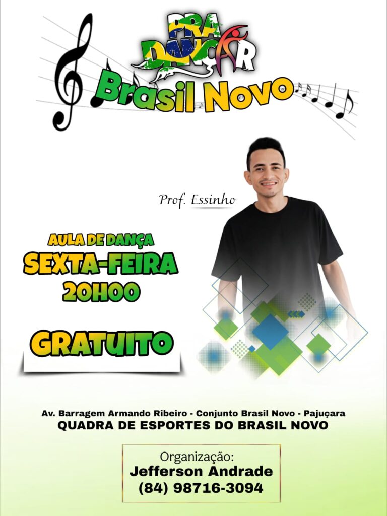A iniciativa faz parte do projeto Pra Dançar Brasil Novo, que tem como objetivo incentivar a prática da dança, promover saúde, bem-estar e fortalecer a convivência comunitária por meio da cultura e da arte. As aulas são abertas para todas as idades e não é necessário ter experiência anterior — basta vontade de aprender e se divertir.